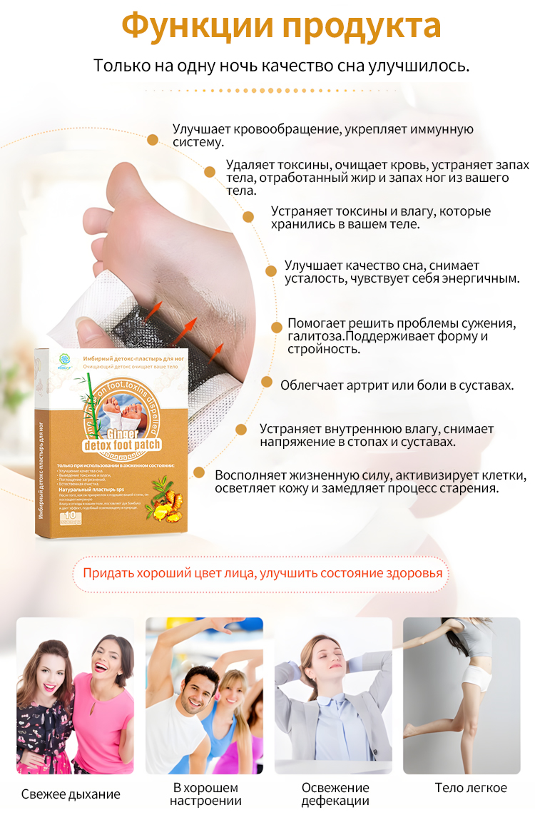 Омолодите свой организм естественным образом с помощью пластыря для ног Ginger Detox!