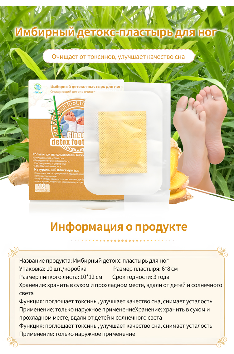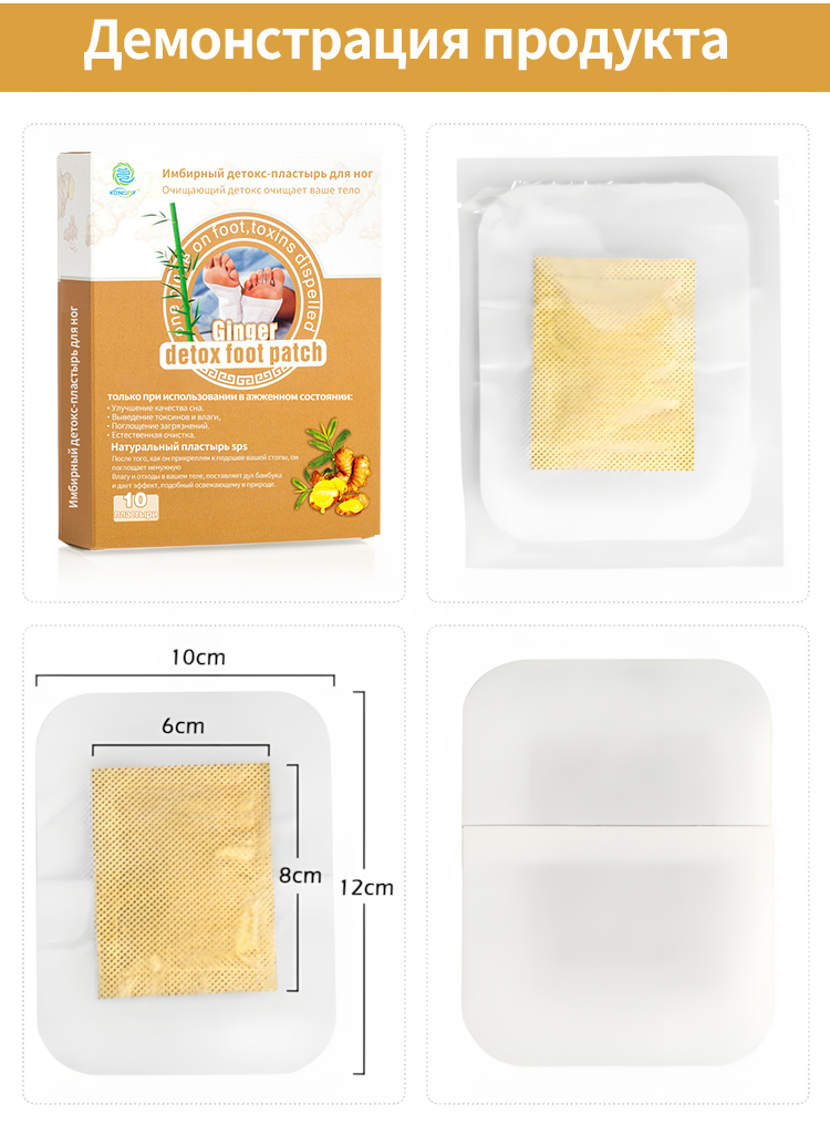 Наш Имбирный детокс-пластырь для ног наполнен натуральный экстракт имбиря и растительные ингредиенты, которые помогут выводит токсины, улучшает кровообращение и снимает усталость . Разработано для использовать на ночь , этот пластырь способствует расслаблению и поддерживает общее благополучие, вытягивая загрязнения через подошвы ваших ног. приятный для кожи, дышащий дизайн обеспечивает комфорт во время сна, позволяя вам чувствовать себя отдохнувшими и полными сил утром.