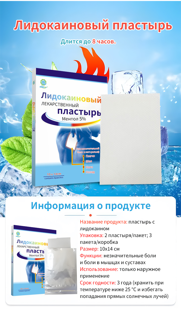 Испытайте мягкий охлаждающий комфорт и удобство использования с нашим трансдермальным пластырем с лидокаином!