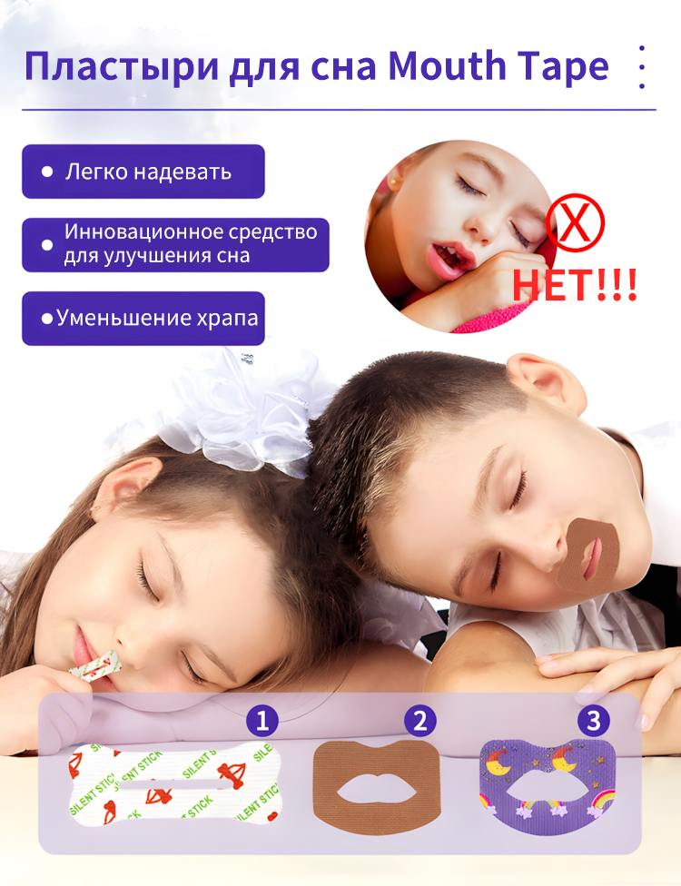 Наш Лента для сна разработан, чтобы помочь улучшить ваш дыхание и качество сна мягко поощряя носовое дыхание пока вы спите. Сделано с мягкий, приятный для кожи клей , он держит рот закрытым в течение ночи, предотвращая храп, сухость во рту и беспокойный сон. Воздухопроницаемая конструкция обеспечивает комфортное использование, способствует лучшему притоку кислорода и более спокойному ночному сну.